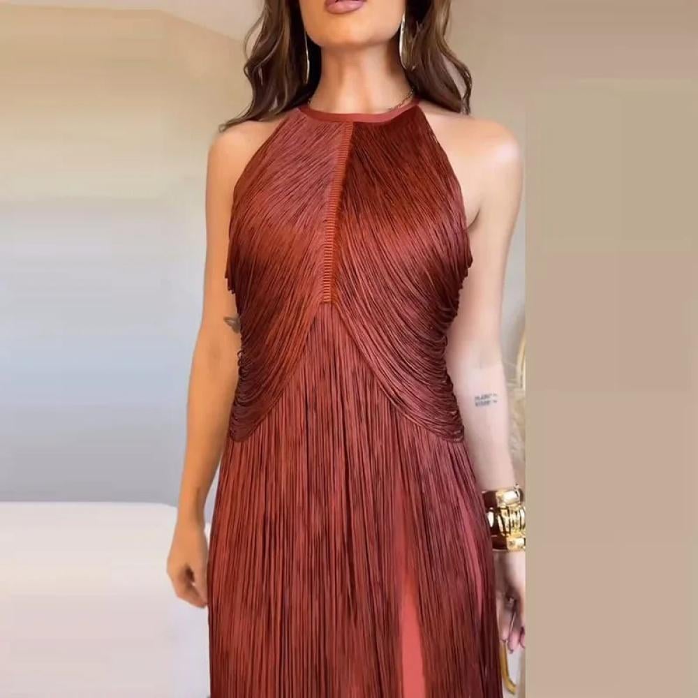 مزاجه الرسن شرابة فستان طويل مثير قبالة الكتف أكمام فستان سهرة أنيق بلون سوينغ فساتين الحفلات النسائية